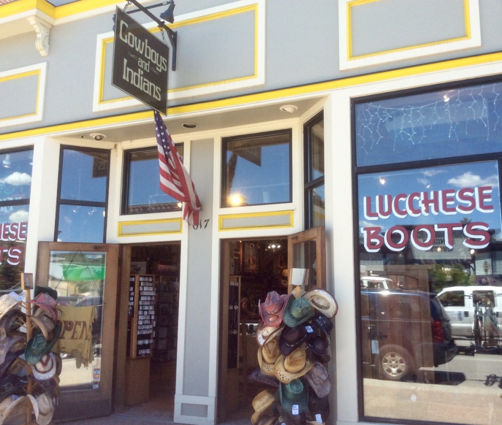 These descriptions of technology, mirror the sale of Native American imagery at western ski resorts. Stores with Native Americans in headdresses (or in some places the stylized selling of head dresses) are commonplace in ski towns. For example, after leaving the museum in Steamboat, I walked through town, attempting to get a sense of the atmosphere. Three of the most prominent stores referenced Cowboys and/or Indians. Much like ski boot descriptions, these stores universalized distinct Indigenous peoples and cultures. For instance, at the end of downtown, with the ski mountain in the background, was a store named Cowboys and Indians. As I entered the store, I was invited into a world of leather. And the ambiance was overwhelmingly western. While the left side of the store was predominately Cowboy themed, the right side was dedicated to Native American artisanal works. The interesting part, however, was that almost all the Native American works were created by Indigenous people in Mexico – not by Native Americans, a term usually reserved for people Indigenous to what is now the United States. There is nothing wrong with selling Indigenous made wares, provided they are truly made by Indigenous people. But like the articles about ski boots, the store flattened Indigenous heterogeneity into a homogenous past. And in both instances, white American skiers get to place themselves as moderns next to real and continuing cultures that are deemed primitive.