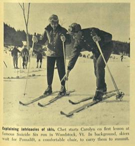 In its early years – the magazine was founded in 1945 – Ebony’s pieces on skiing were generally laudatory. The first article was published in 1949, and it was titled “Skiing: Popular Winter Sport Becoming Favorite with Negro Fans.” According to the magazine, skiing which was rapidly growing in popularity nationwide, was also increasingly appealing to America’s Black middle class. About a decade later, in 1958, Ebony published a laudatory piece celebrating Chet McGuir, a Black skier at Dartmouth. Noting McGuir’s place in one of America’s most exclusive institutions, the article recounted the invitation he extended to Carolyn Morant, a Black student at the equally prestigious Bryn Mawr College outside Philadelphia. Despite only being students, the article was filled with pictures. One depicted McGuir teaching Morant to ski on Suicide Six, in Woodstock, Vermont. To the knowledgeable skier, the implication was clear. Suicide Six was the location of the United States’ first rope tow in the mid-1930s (although it is far to wonder how many readers at the time had a sense of ski history). Iconic and prestigious, the implication was if Black skiers could ski there, why not anywhere? The magazines general reflections on skiing continued. An article in 1960 celebrated Dave Lucy, a Black student from North Conway, New Hampshire. Lucy had formerly skied on the Denver University race team. Furthermore, his hometown of Cranmore, New Hampshire where one of the first ski hills in American was located, enhanced his bona fides as a skilled skier. These first several articles were almost formulaic. They highlighted young Black skiers. They celebrated the sport as increasingly popular to the Black middle class. And, almost universally, the subjects had ties to iconic ski locations, Denver University and North Conway, Berthoud Pass and Winter Park, and Dartmouth and Suicide Six.